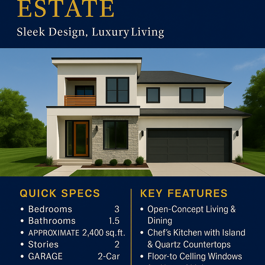 The Modern Two-Story Estate is the perfect blend of contemporary architecture and timeless comfort. With its clean lines, expansive windows, and elegant finishes, this home is designed to impress. From open-concept spaces that flow seamlessly for entertaining to a private owner’s suite for retreat, every detail reflects modern luxury living.